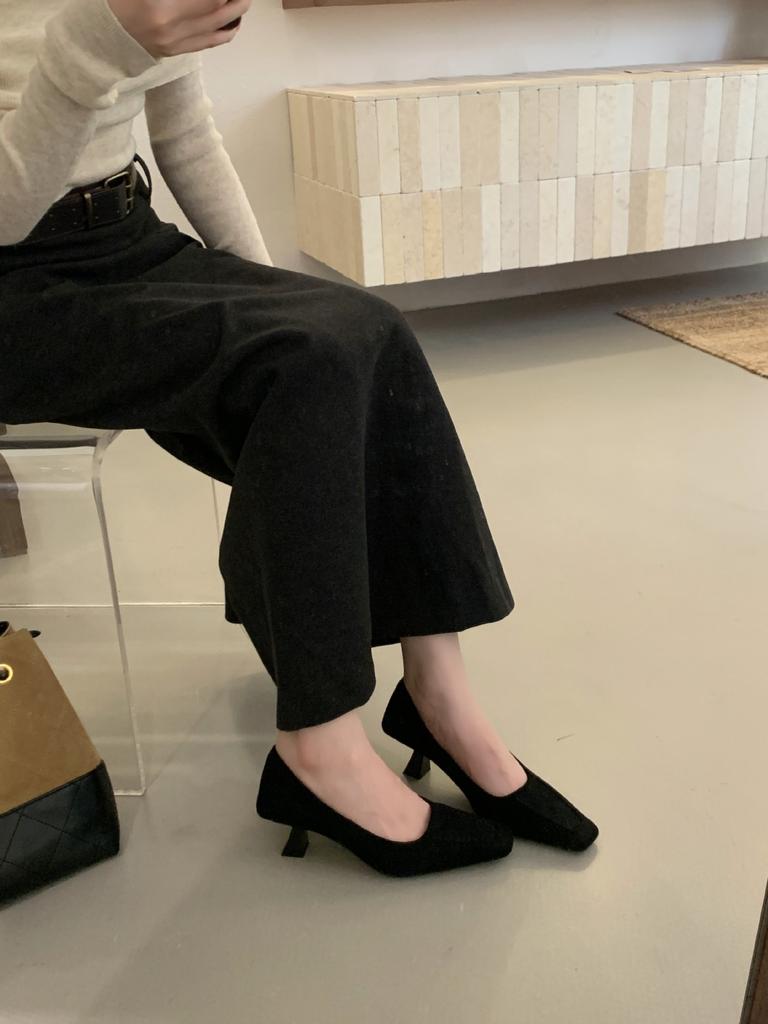 2025 new old money style workplace high heels suede one-pedal ladyshoes women's square head shallow mouth single shoes