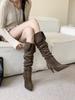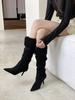 2025 autumn and winter new pointed European and American suede thin heel high heel temperament French fashion sexy women's boots stacking boots