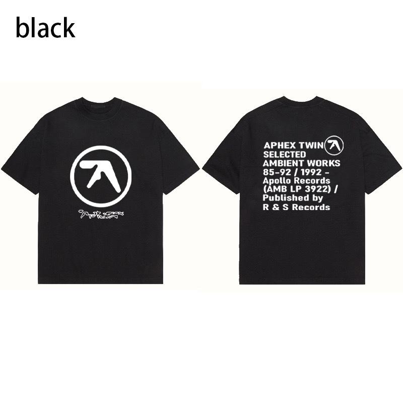 Men T-Shirt Aphex Black Print Cotton Graphic Oversized Korean Fashion Short Sleeve Tops Tees Y2k Streetwear Clothing