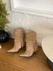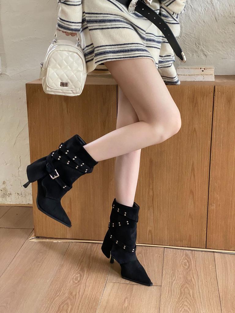 Rivet suede high trouser tube boots women's 2025 new niche design pointed thin high heel medium tube knight boots