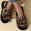 New leopard print plush slippers women's elastic cotton slippers home warm fluffy slippers women