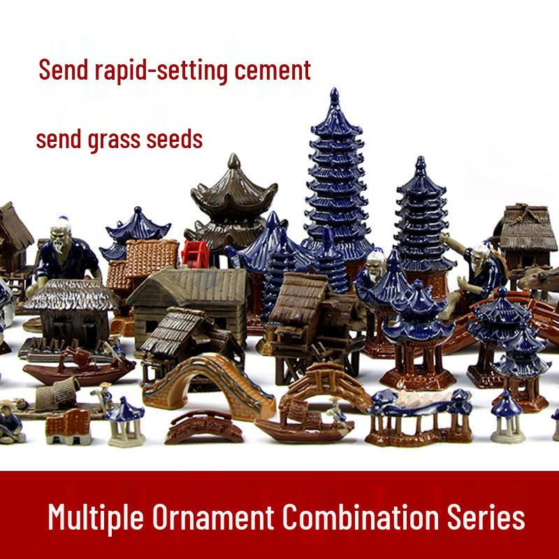 Rocalla de Piedra de Montaña Cerámica para Estanques de Peces, Decoraciones de Bonsái - Adornos de Paisaje para Patio.