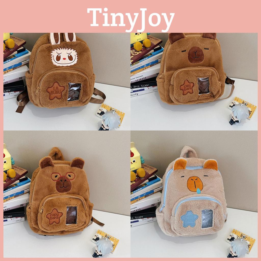 Plush Capybara Cartoon Backpack With Front Pouch For Teen Travel School