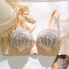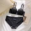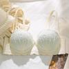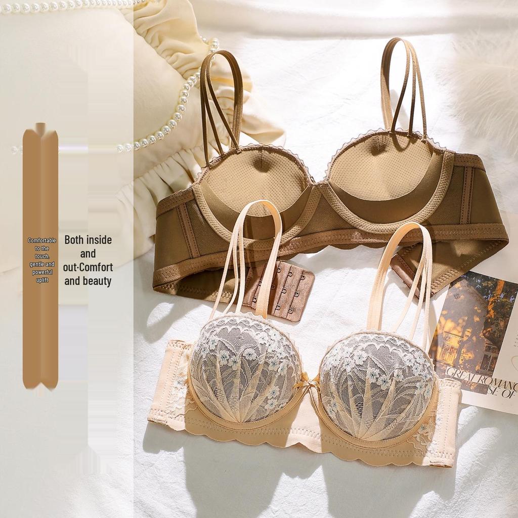 Sujetador de Lencería Push Up de Encaje Media Copa para Pecho Pequeño y Plano, Sin Aros, Anticaída, Relleno Extra Grueso.