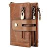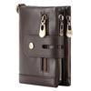 Billetera de Cuero RFID para Hombre: Estilo Vertical, Antirrobo, Piel de Vacuno Encerada al Aceite, Doble Cremallera, Multifuncional