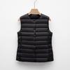 Este chaleco ligero de plumón para mujer es la prenda ideal para superponer en las estaciones más frías del otoño y el invierno.. Confeccionado en nailon duradero, este chaleco presenta un grosor fino de prenda exterior que lo hace perfecto para añadir calidez sin abultar.. El diseño sin mangas y el cuello redondo ofrecen un look moderno y versátil que se puede combinar fácilmente con diferentes atuendos.. El chaleco está aislado con plumón de pato de primera calidad, proporcionando un calor excelente mientras mantiene una sensación ligera.. Es una opción elegante y práctica para mantenerse cómodo en el clima frío.
