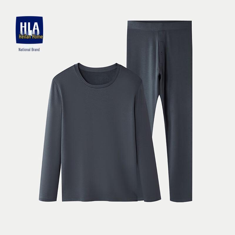 HLA Men's Round Neck Brushed Thermal Underwear Set