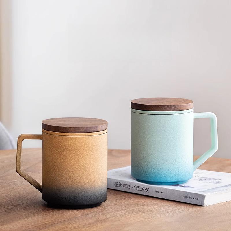Ceramic Tea Mug with Lid Filter Mug Women Men Office Tea Separation Cups