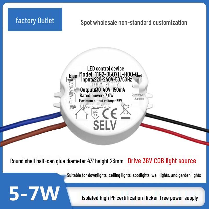 COB36V Flicker-Free Isolation Driver for Round Shell Spotlight, Downlight, Courtyard, and Wall Light (5-36W, High P Certification)