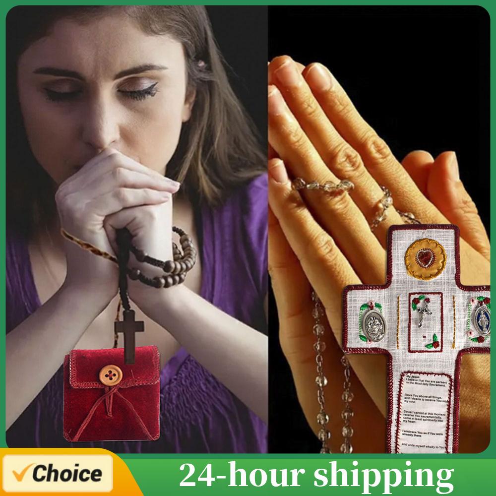 2/1PCS Portable Blessings Shrine With Cross Inside Prayer Quilt Handmade Sew Colorful Quilts Remembrance Christian Prayer Gifts