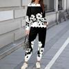 Conjuntos para mujer de 2 piezas Camisetas de manga larga con cuello redondo Pantalones deportivos estampados Conjuntos con bolsillos