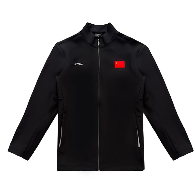Li Ning Autumn And Winter Fleece Lined Stand Collar National Flag Logo Casual Warm Jacket Men Jacket Black AWDVD03-1