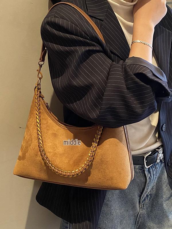 2025 Suede Retro Velvet Women's Crossbody Shoulder Bucket Bag - Large Capacity, Chain Strap, Autumn/Winter Collection