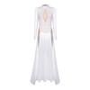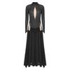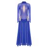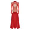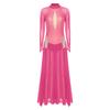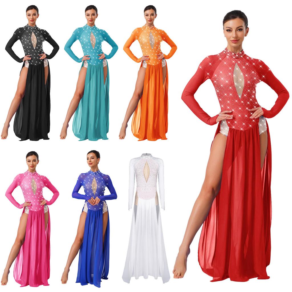 Vestido de Danza Lírica para Mujer con Pedrería Brillante, Manga Larga, Diseño sin Espalda, Chifón, Bajo con Abertura, Leotardo de Una Pieza