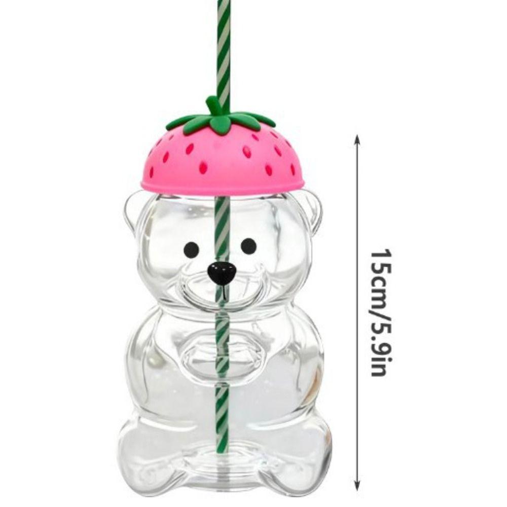 Taza de Cristal de Oso 2025 con Tapa Vaso con Pajita de Oso Lindo Vaso de Cristal de Osito de Peluche Hogar Bar
