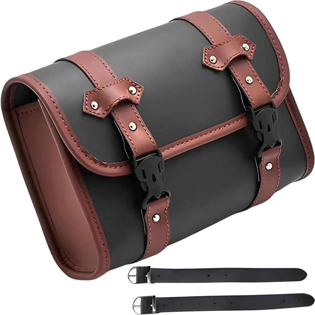 Mellbo Waterproof PU Leather Bike Side Bags for Bicycles, Motorcycles, and Cars, Small Motorcycle Front Bags, Brown, Two-Tone
