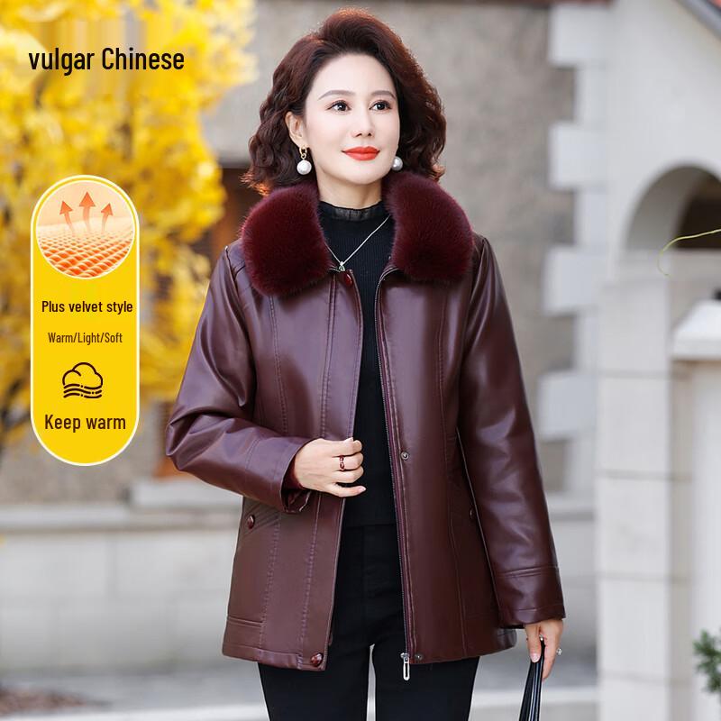 Women's Mid-Length Leather Jacket with Detachable Liner