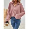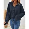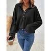 Autumn Winter Turn Down Collar Casual Fashion Sweatshirt Women Solid Color All-match Buttons Pullover Top
