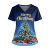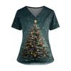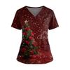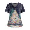 Women's Christmas Printed V-Neck Double Pocket Short Sleeves Hem Slit Uniform Caregiver Top