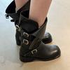 Cowhide version~ Belt buckle leather black Martin boots for women, square head thick-soled medium boots, thin knight boots