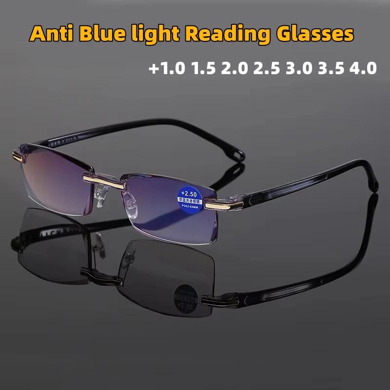Gafas de lectura con protección contra la luz azul para hombre y mujer, anteojos de lectura sin montura para presbicia, estilo vintage, ultraligeros, ópticos, para hipermetropía