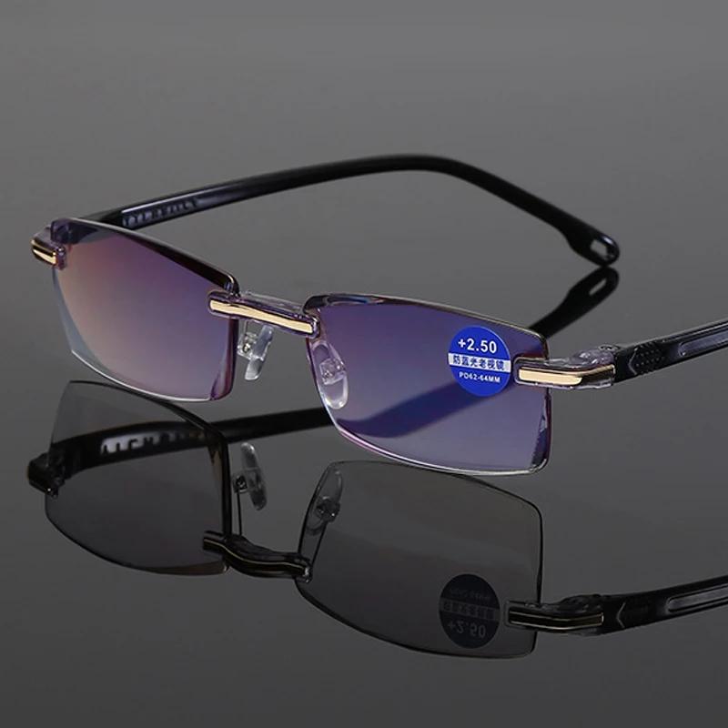 Men Rimless Reading Glasses Classic Anti Blue Light Magnification Eyeglasses Vintage Presbyopia Eyewear Diopter +1.0 To +4.0