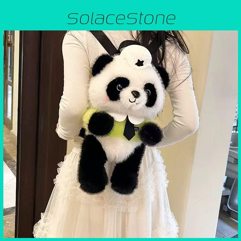 Panda Police Plush Backpack For Girls With Zipper Closure And Design Cartoon