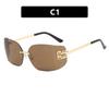 Gafas de Sol de Lujo Metalizadas Divertidas Sin Montura Mujer Marca Diseñador Remaches Rectángulo Degradado Lentes Curvas Gafas de Sol Clásicas Femeninas