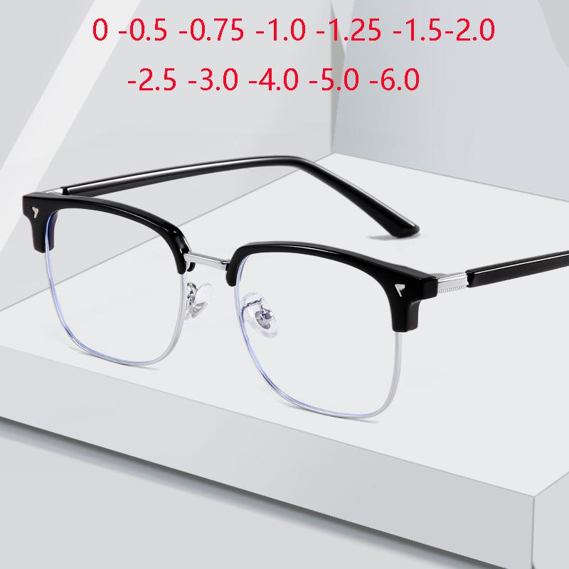 0 -0.5 -0.75 To -6.0 Half Frame Anti Blue Rays Square Nearsighted Glasses For Women Shortsighted Prescription Spectacles