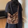 Large capacity plaid canvas bag women's 2025 new autumn and winter retro casual niche shoulder bag commuter tote bag