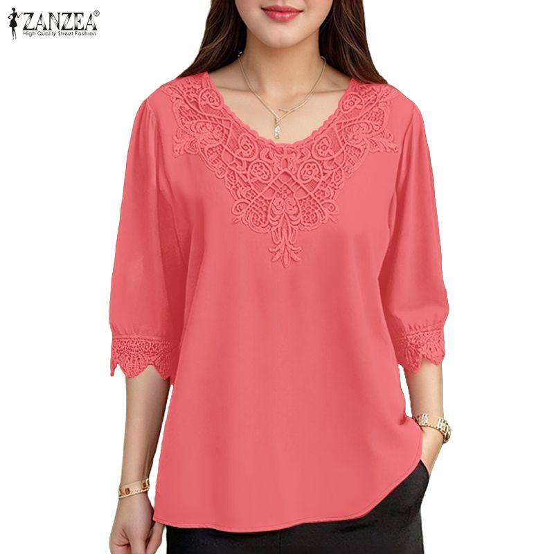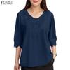 ZANZEA Blusa Casual de Encaje Crochet con Escote en V y Manga Media para Mujer