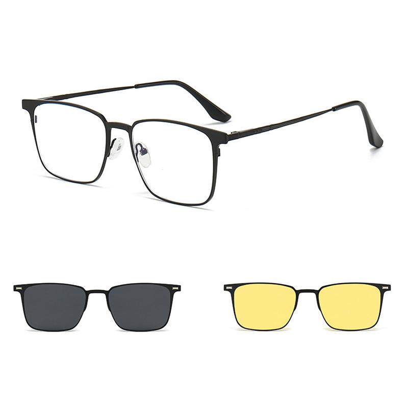 2+1 Men Fashion Alloy Glasses Frame With Polarized Clip On Sunglasses And Night Vision Women Eyewear