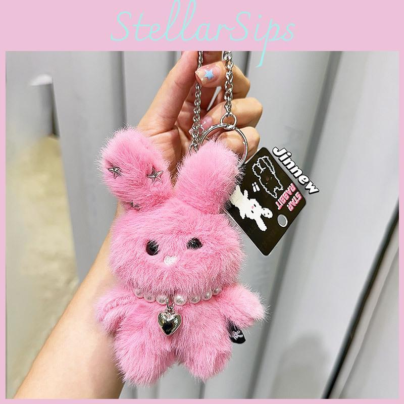 This plush keychain features a sweet and cool star-themed bunny design, crafted from soft plush material for durability and comfort. it provides a charming accent for keys and bags. Its lightweight construction enhances portability, making it ideal for daily use or as a gift. Users can easily attach it to keys, backpacks, or luggage, adding a playful touch. Wipe with a damp cloth to clean and maintain its vibrant colors.