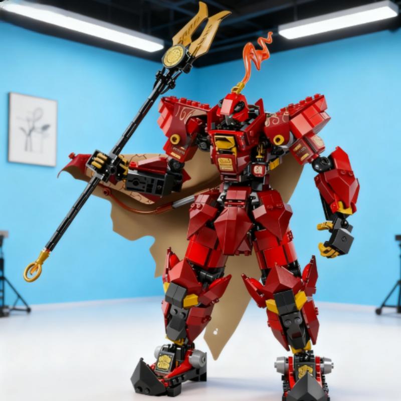 MOC Sets 996pcs Flame Knight Mecha Building Blocks 71846 Mecha Character Model Brick Desktop Decoration Display Toys Gifts