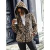 2025 Autumn Winter Women's Leopard Print Hooded Long Sleeve Loose Casual Coat Flannel Fleece Outerwear for Europe US