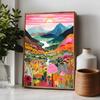 Flores Lago de Montaña Póster Colorido Paisaje Natural Viajes Decoración Póster Calidad HD Arte de Pared Pósters Retro para Decoración de Habitación en Casa