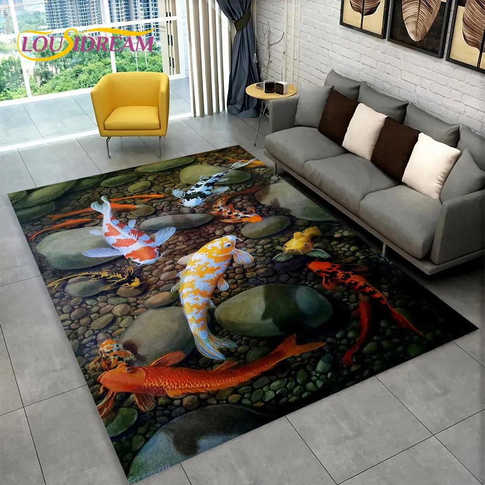 3D Pastoral Tai Chi Fish Area Rug,Carpet Rug for Home Living Room Bedroom Sofa Doormat Decor,Kid Play Kitchen Non-slip Floor Mat