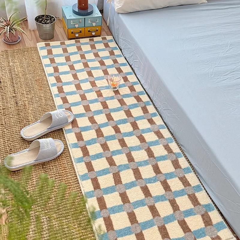Bedroom Carpet Bedside Long Floor Mat Blue Plaid Carpets Soft Fluffy Foot Mats Minimalist Home Decoration Rug for Living Room