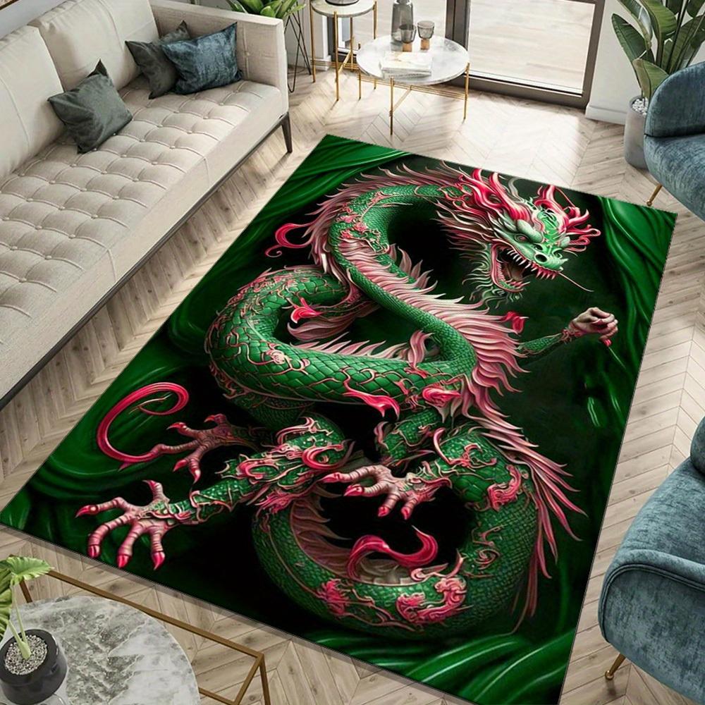 Vibrant Dragon Design Area Rug -Crystal Velvet, Non-Slip Rubber Backing, Perfect for Home, Restaurant, Coffee Shop