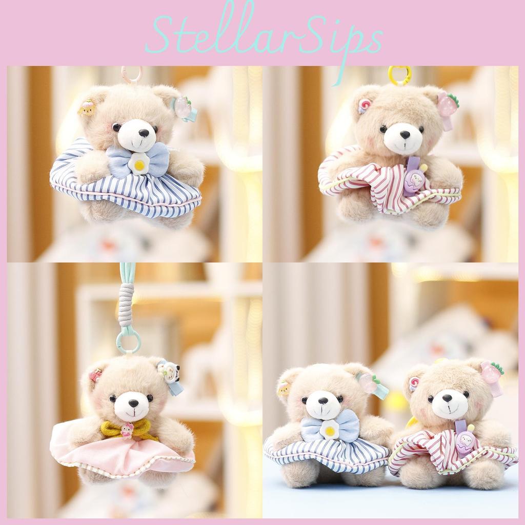 Introducing the adorable plush teddy bear, a charming addition to any collection or gift idea. This 15-centimeter bear features a soft, short plush exterior filled with premium PP cotton, ensuring a cuddly and durable companion. Available in three delightful designs blue striped dress, red striped dress, and pink tulle dressthis teddy bear combines style with comfort, making it a versatile accessory for various occasions.