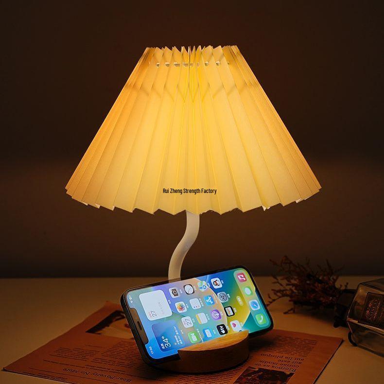 Multifunctional Pleated Bedside Table Lamp with Storage & Remote-Control Night Light
