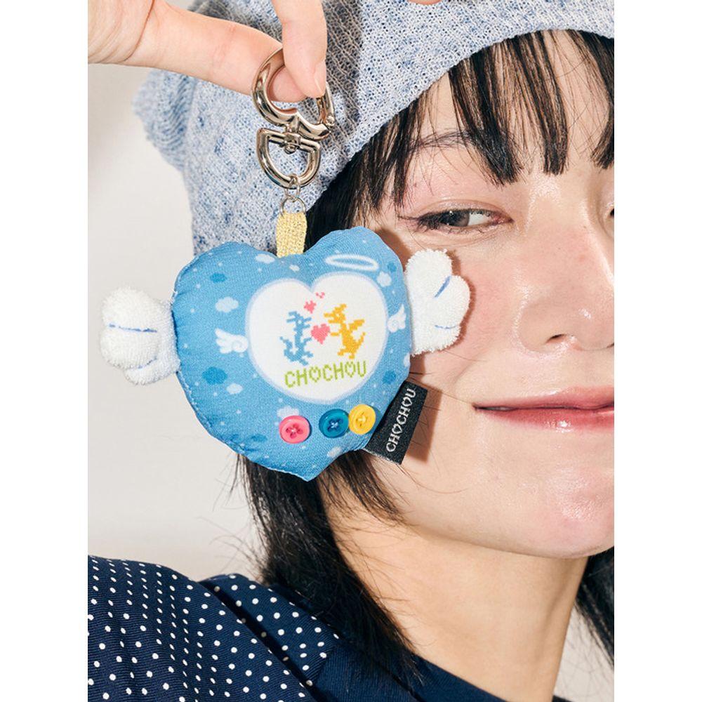 CHOCHOU WING HEART PIXEL KEY RING [ANGEL SKY]