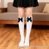Halloween Christmas Pink Velvet Over-the-Knee Bow Socks - Black & White Stockings