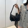 Women Fashion Shoulder Bag with Ruched Drawstring Strap Bow Leisure Satchel Bag Solid Color Cute Sling Bag Ladies Outdoor Bag