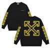 1244 Off-White 2025 Otoño Nuevo Cinta Métrica Regla de Flecha Cinta Estampada Sudadera de Cuello Redondo para Hombre y Mujer