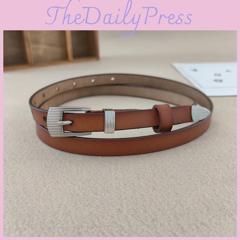 Handcrafted Leather Twolayer Thin Waistband With Metal Closure For Fashion Daily