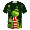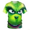 Summer Fashion Men's T-shirt Christmas Cartoon Green Monster 3D Print Boy Daily Casual Pullover Men's Oversized Top Clothing