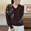 Spring Autumn Women's V-Neck Sweater Loose Rhinestones Pullover Knit Top Solid Color Plus Size Sweater
