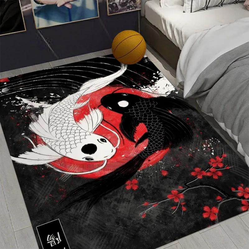 Koi Fish Print Area Rug Non-Slip Floor Mat for Home Living Room Bedroom Rug Machine Washable Carpet Decor
