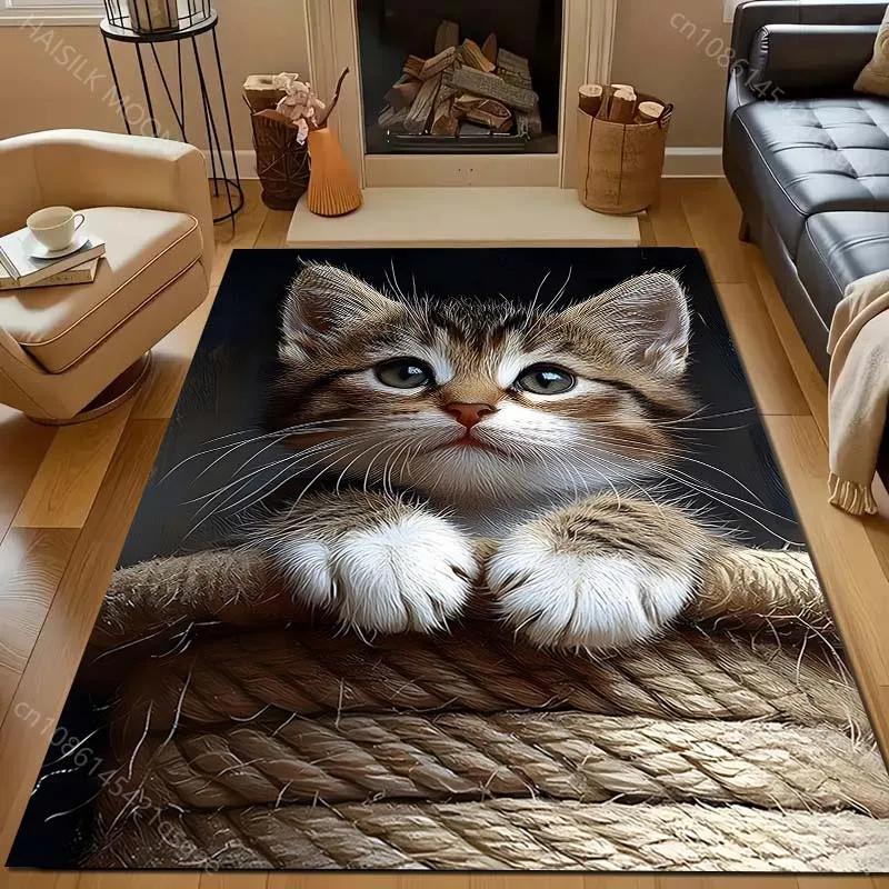 Alfombras con Patrón de Gatito Lindo 3D para Dormitorio, Sala de Estar, Sofá, Estudio, Yoga, Alfombra Antideslizante, Tamaños Múltiples Opcionales, Envío al Día Siguiente